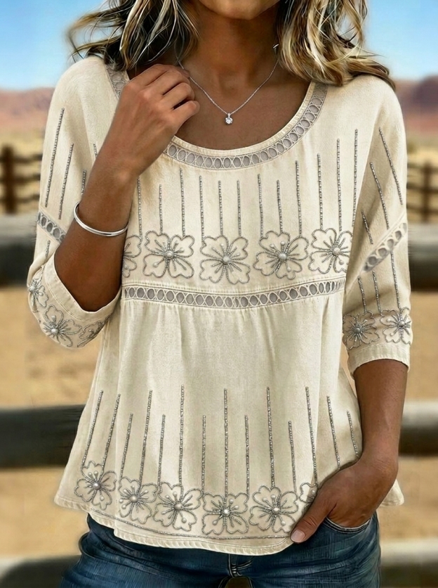 Whether you're strolling through ranch lands or gathering with friends, this blouse will have you radiating confident charm.