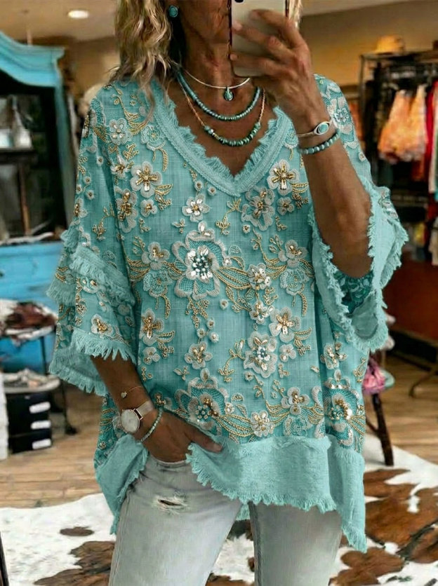 This unique and artistic Eucalyptus Teal top is designed for women who value artisanal details and comfort, helping you effortlessly elevate your Western-inspired look. A standout statement piece you can't go wrong with! Wear it and you'll get lots of compliments!