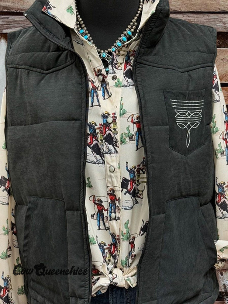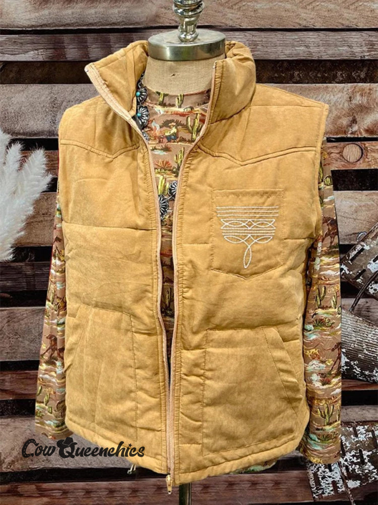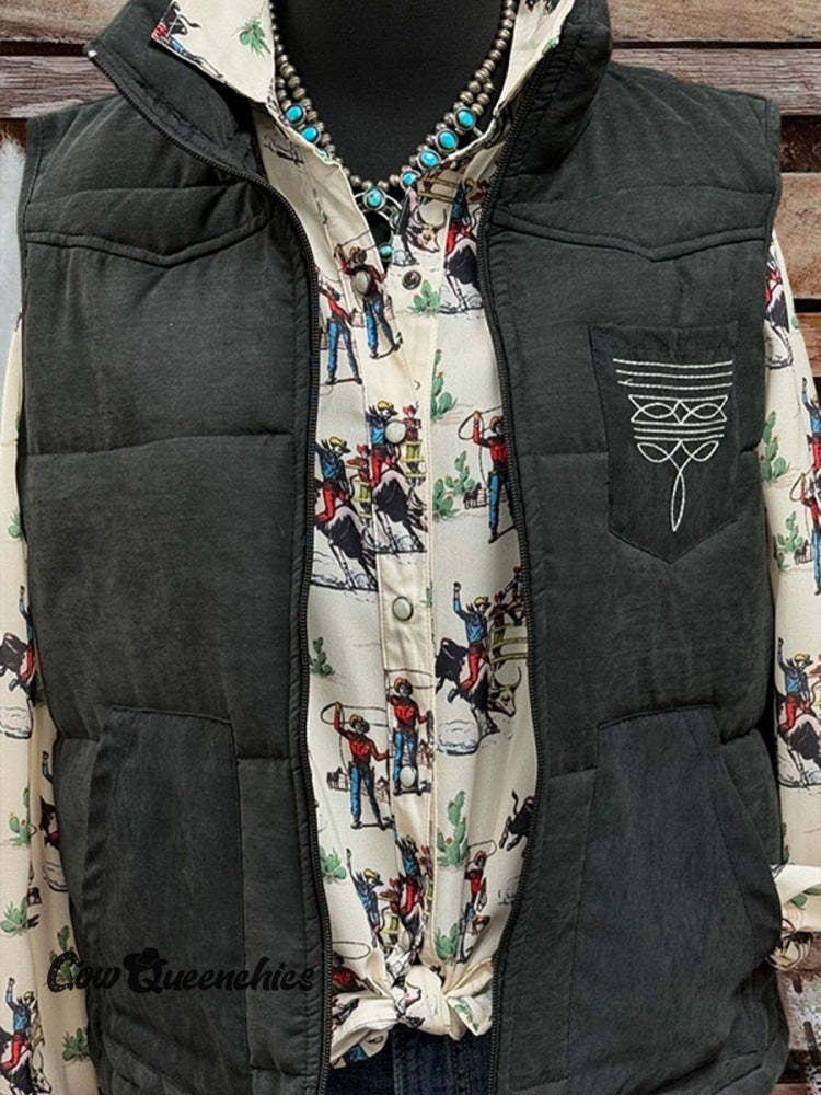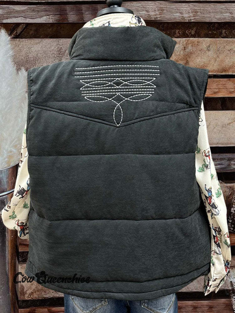 Women's Boot Stitch Printed Casual Quilted Vest Casual
